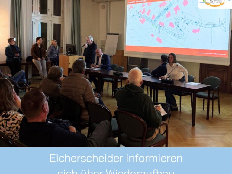 Wie werden die betroffenen Straßen in Eicherscheid nach dem Wiederaufbau aussehen? Darüber sprachen Vertreter der Stadtverwaltung sowie Planer Christian Lorenz…