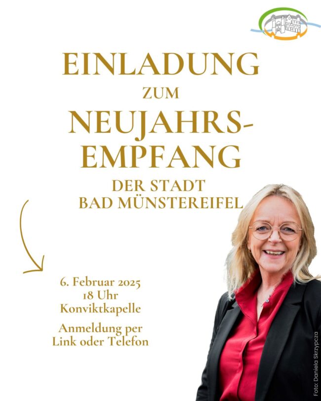 Liebe Bürgerinnen und Bürger von Bad Münstereifel, ich lade Sie herzlich zum Neujahrsempfang 2025 ein! In diesem Jahr richte ich mich vor allem an die Neubürgerinnen und Neubürger sowie an alle diejenigen, die sich für ihre Stadtverwaltung interessieren. Gemeinsam heißen wir das neue Jahr willkommen und bringen Ihnen die Arbeit unserer Stadtverwaltung näher – und…