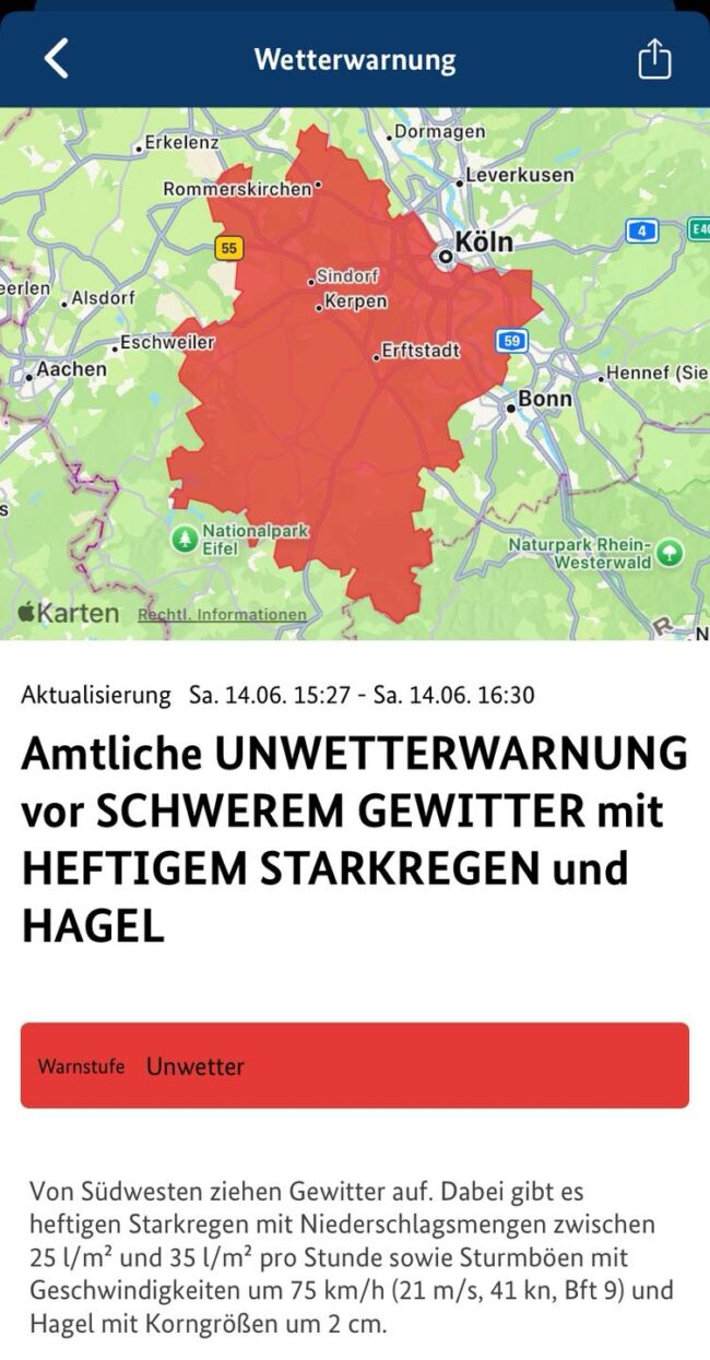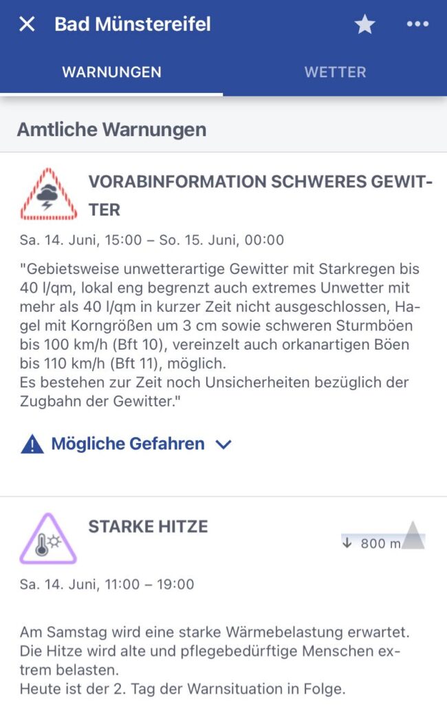 +++ Unwetterwarnung des DWD für den 14.06.2025 ab 15:00 Uhr +++ #badmünstereifel #heimat #Münstereifelchen Source