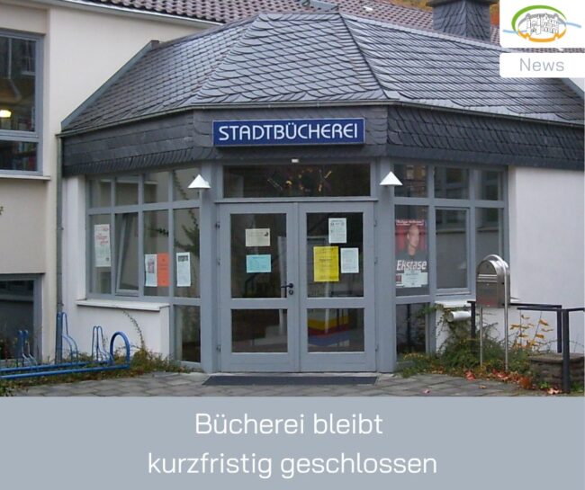 Aus kurzfristigen organisatorischen Gründen muss die Stadtbücherei am Donnerstag, 07.08.2025, leider geschlossen bleiben. Verlängerungen sind nur per Mail an stadtbuecherei@bad-muenstereifel.de möglich. Für Recherchen steht das Online-Portal zur Verfügung. Source