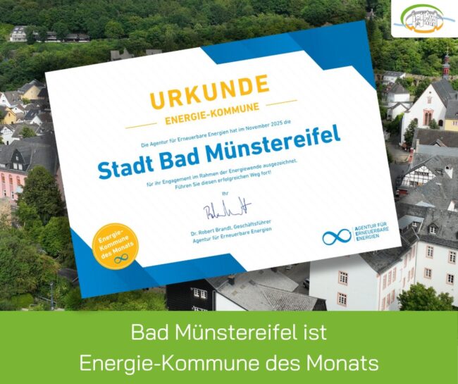 Bad Münstereifel ist die Energie‑Kommune des Monats November 2025! Die Agentur…