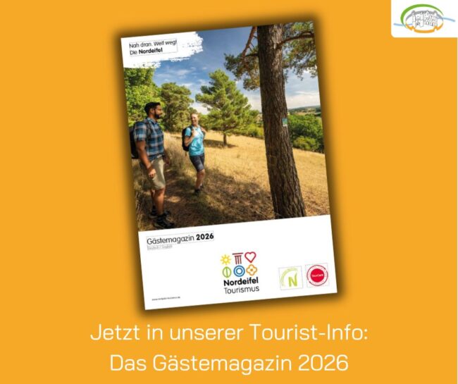 Kurz vor dem Jahreswechsel präsentiert die Nordeifel Tourismus GmbH (NeT) ihr neues 72‑seitiges Gästemagazin „Nordeifel“ 📖✨. Das Magazin macht Lust auf Ausflüge und Urlaube in der Region rund um den Nationalpark Eifel 🌲🏞️ und liefert jede Menge Inspirationen für große und kleine Entdecker:innen 🚶♀️🧭. Ob Naturzeit, Wandern, Radfahren, Familienabenteuer, Adrenalinkicks oder Kultur – die Broschüre…