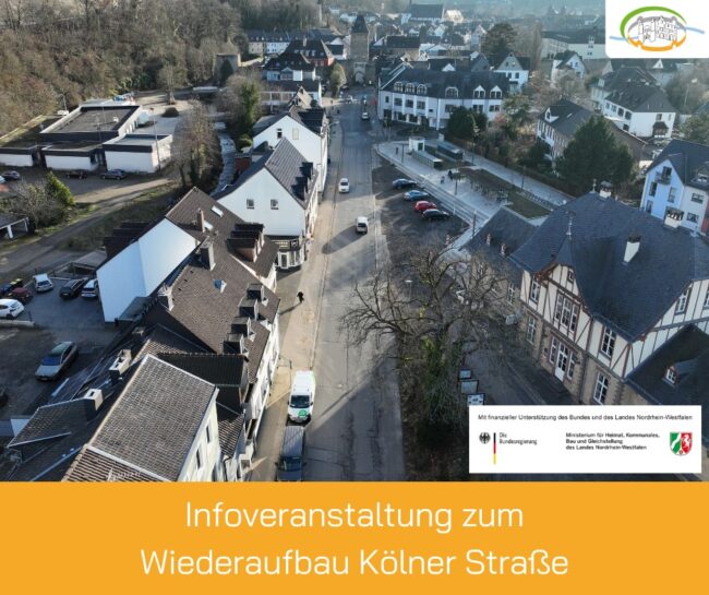 Eine der großen Baumaßnahmen des Jahres 2026 in Bad Münstereifel ist die Neugestaltung der Kölner Straße. Die Tiefbaumaßnahmen an der Straße starten voraussichtlich im Februar. Nach derzeitiger Planung wird der Umbau Ende 2026 abgeschlossen sein. Während der Bauarbeiten wird es zu Verkehrsbehinderungen kommen. Eine Vollsperrung ist nur innerhalb der Sommerferien im Bereich der Schleidtalstraße zwischen…