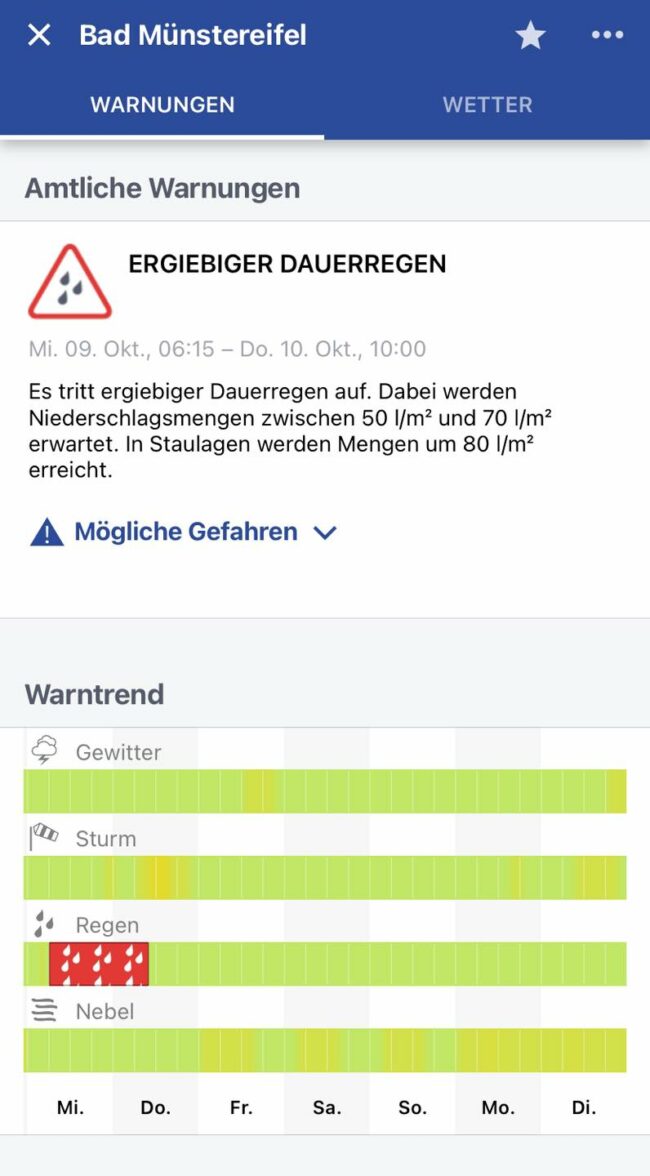 +++ Amtliche Warnung – Ergiebiger Dauerregen +++ #badmünstereifel #Münstereifelchen #heimat Source