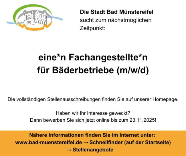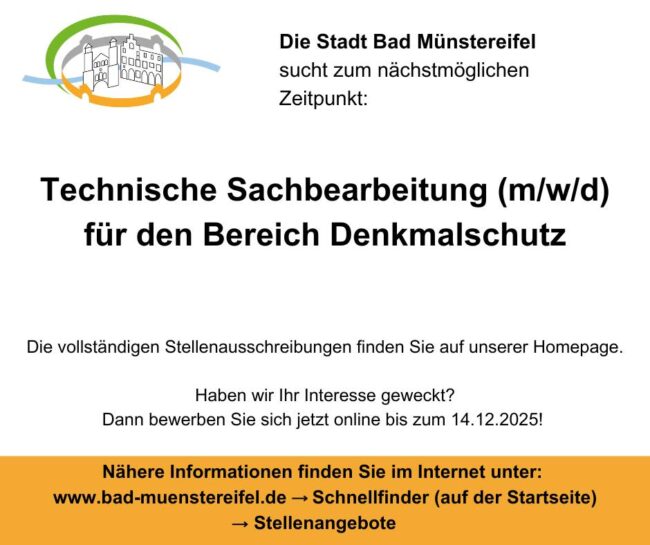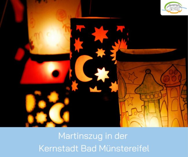 🏮 Der Martinszug und die Martinsfeier in der Kernstadt Bad Münstereifel finden am Mittwoch, 12. November 2025, statt. Die Teilnehmenden stellen sich um 17:45 Uhr am Klosterplatz. Start ist um 18 Uhr. 🏮 Streckenverlauf: Klosterplatz – Langenhecke – Heisterbacher Straße – Turmstraße – Orchheimer Straße – Wertherstraße – Wallgasse – Langenhecke – Klosterplatz 🏮 Anschließend…