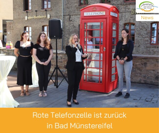 Bad Münstereifel hat eines seiner Wahrzeichen zurück: die rote Telefonzelle in der Altstadt. Die offizielle Eröffnung feierte Bürgermeisterin Sabine Preiser-Marian nun mit zahlreichen Gästen. Die Telefonzelle ersetzt das Original, das in der Flutkatastrophe 2021 schwer beschädigt wurde und nicht restauriert werden konnte. „Viele Bürgerinnen und Bürger sowie Gäste unserer Stadt haben gefragt, ob die rote…