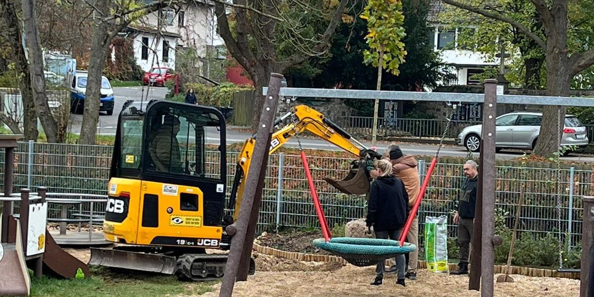 Heute hat der DVI die Bäume auf dem Spielplatz gepflanzt. 🌳