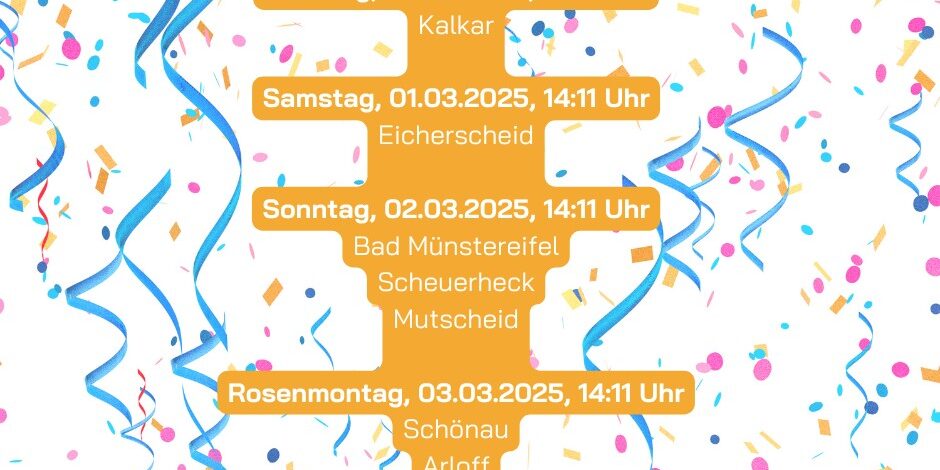 De Jecke trecke wedde dörch de Stroße! 🤡 Hier sind die Termine aller Karnevalszüge, die der Stadtverwaltung bekannt sind: