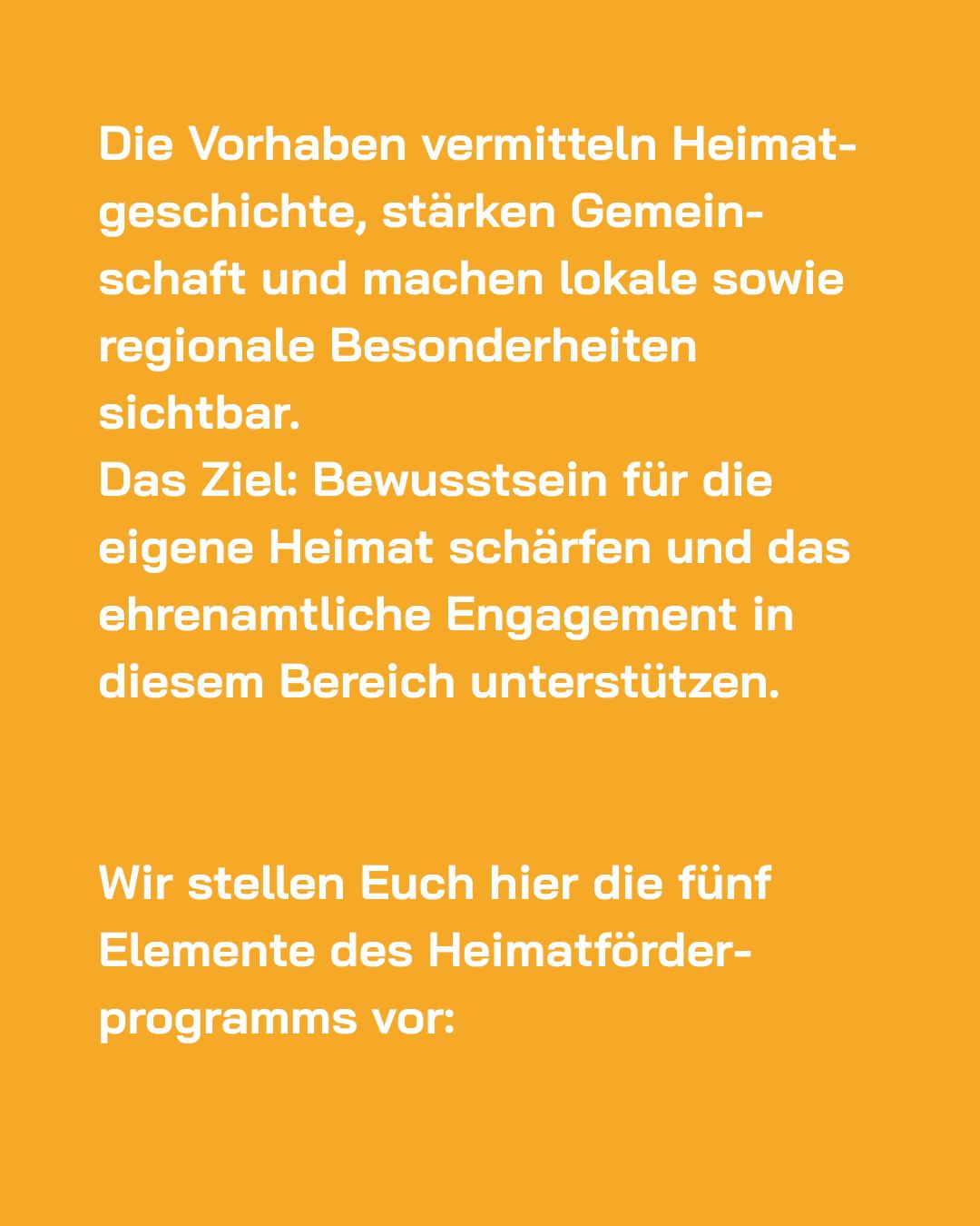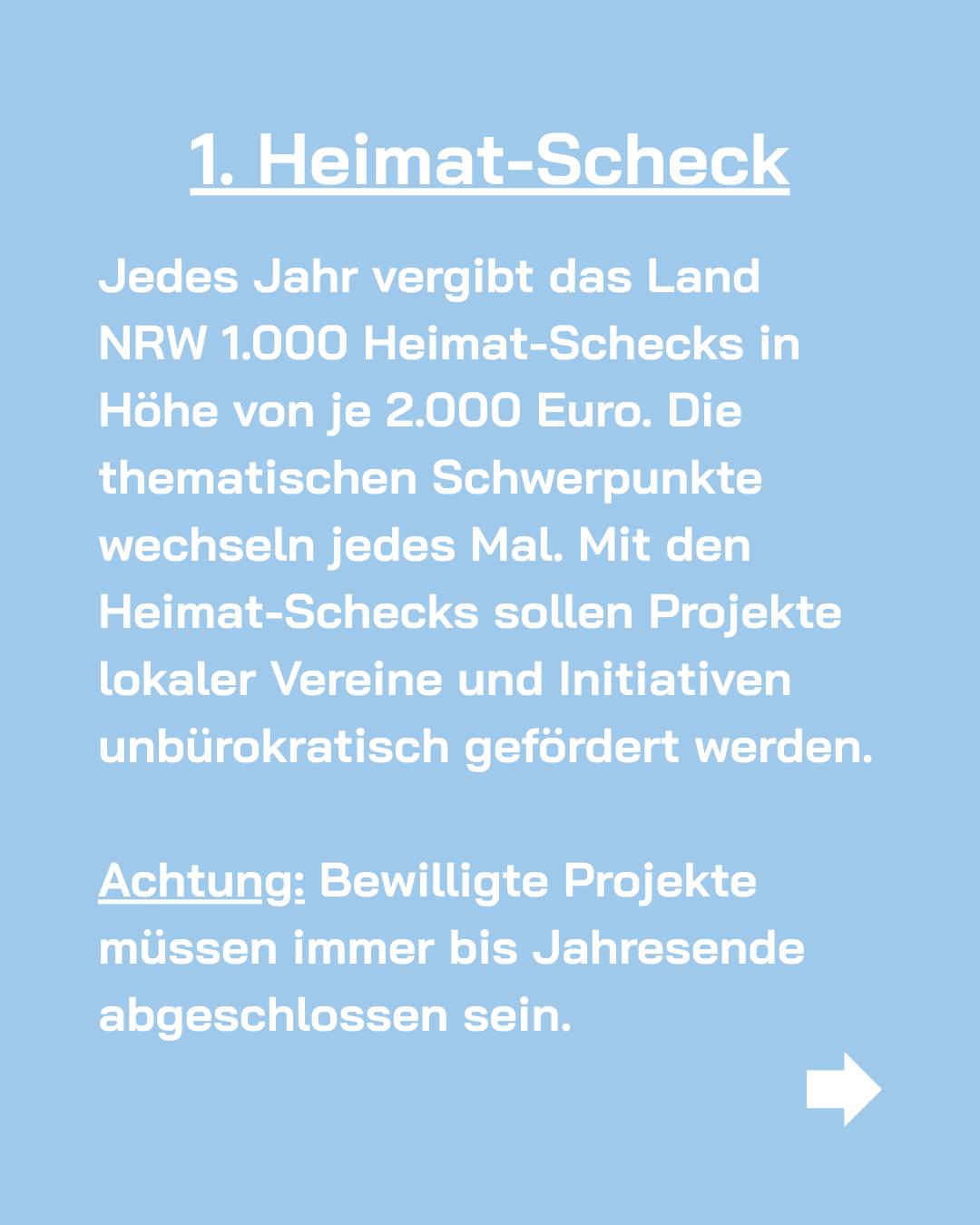 1️⃣ Heimat-Scheck: 2.000 € zur Förderung von Projekten lokaler Vereine und Initiativen. Der inhaltliche Schwerpunkt wechselt jedes Jahr.