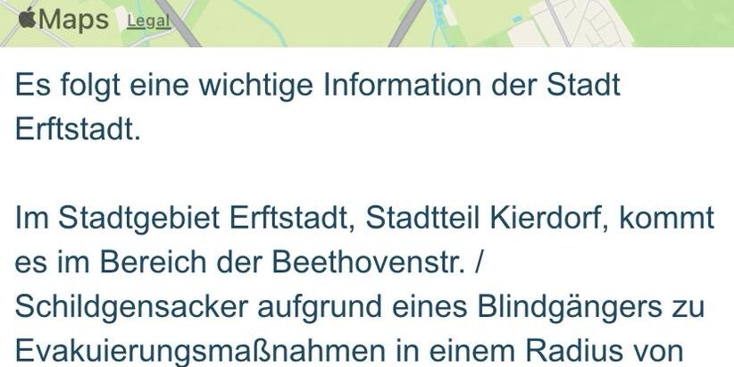 Aufgrund eines Kampfmittelfundes in Erftstadt und dem festgelegten Evakuierungsradius, ist mit erheblichen Verkehrseinschränkungen zu rechnen.