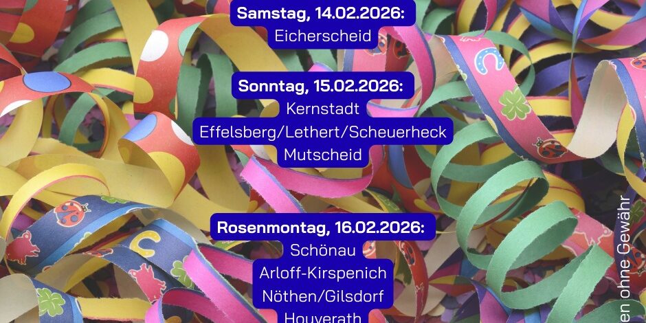 🚂🎊 Karnevalszüge im Stadtgebiet Bad Münstereifel 2026 🚂🎊