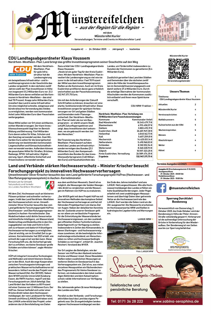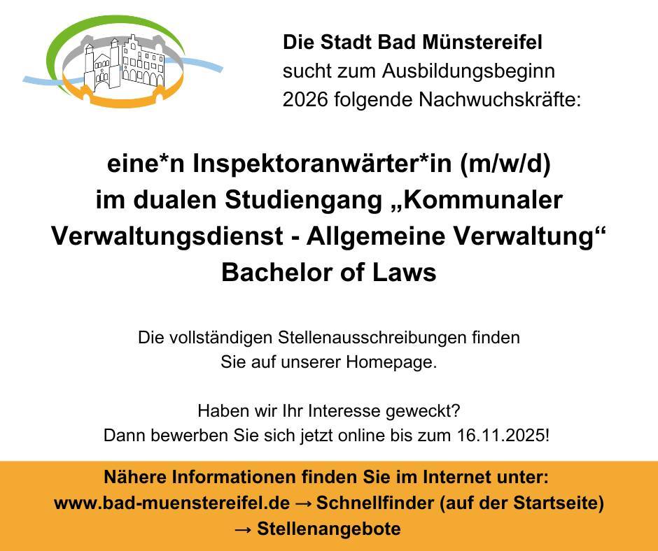 Die Tourist-Information erhält einen eigenen Instagram-Kanal! 🤩 Auch auf Facebook wird sie vertreten sein. Künftig findet Ihr dort viele Informationen rund um Freizeittipps, Veranstaltungen und und und… Im Laufe des 28. Novembers 2025 geht es los! Und ab dem 1. Advent gibt es dort täglich den Adventskalender. 🎄 Wir freuen uns!! 🥳 @bad_muenstereifel_tourismus (ab 28.11.2025)…