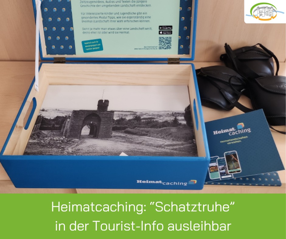 Im Rahmen der offiziellen App-Vorstellung in der Kreisverwaltung nahmen Lisa Eckardt und Michaela Kirchner vom Amt für Bildung und Tourismus der Stadt Bad Münstereifel eine zugehörige „Schatzkiste“ in Empfang. Die Box enthält Ferngläser und Bildtafeln zur Ergänzung der App-Nutzung. Sie ist besonders für den Einsatz mit größeren Gruppen, z.B. Schulklassen, Familien und Wandergruppen, geeignet. Die Schatzkiste kann bei der Tourist-Info im Bahnhof spontan oder mit vorheriger Anmeldung unter Tel. 02253/542-244 ausgeliehen werden.