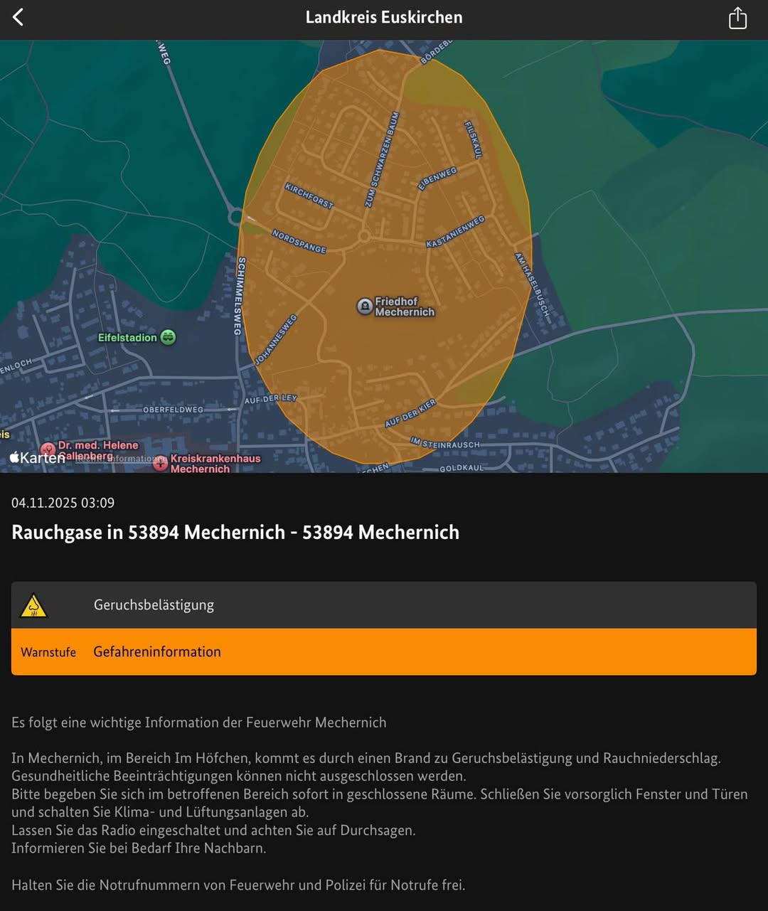 In der Ortslage Mechernich kommt es zu einer Rauchgasentwicklung!