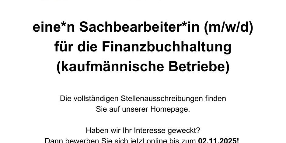 ◼️ eine*n Sachbearbeiter*in (m/w/d) für die Finanzbuchhaltung (kaufmännische Betriebe)
