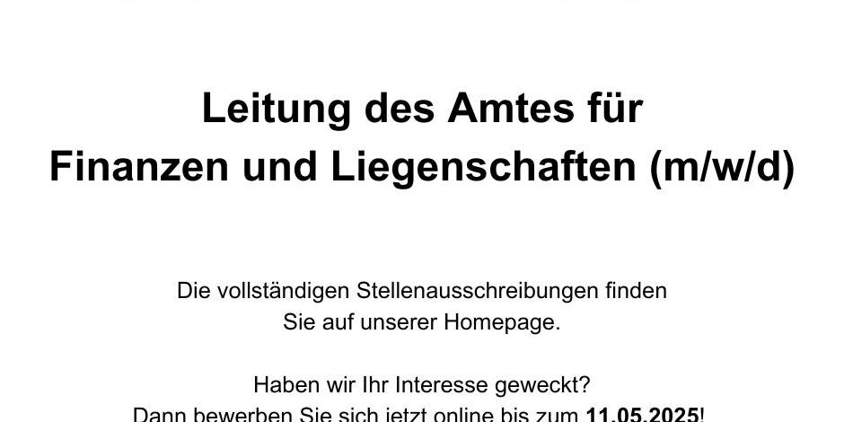 ◾ eine Leitung des Amtes für Finanzen, Liegenschaften (m/w/d)